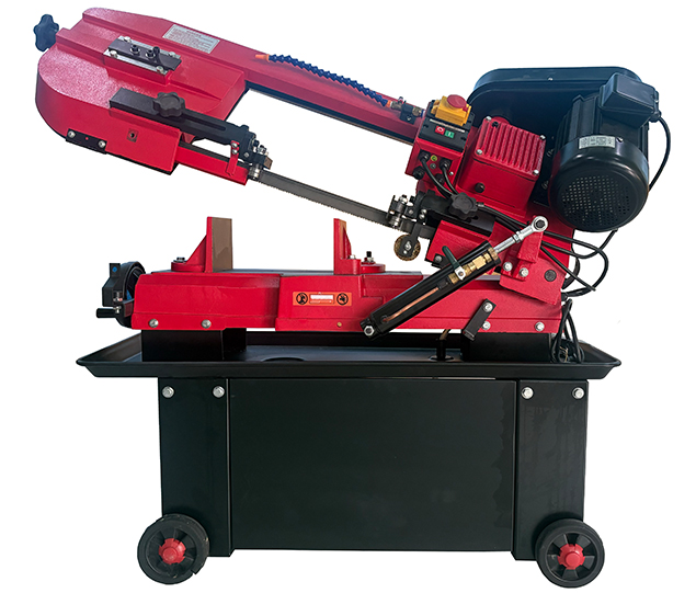 金锋锯业生产的GZ4018带锯床为小型剪切式锯床,采用紧凑的剪切式设计,机身轻巧灵活,占地面积小,大幅节约了加工空间。锯床为手动操作,使用起来便捷灵活。这款小锯床移动与安装十分简便,可快速投入各类施工现场;GZ4018锯床通过液压阀精准控制下料速度,确保切割过程稳定均匀,有效减少材料损耗;设备锯头可旋转45°,轻松实现角度切割,满足不同加工场景下的加工需求。