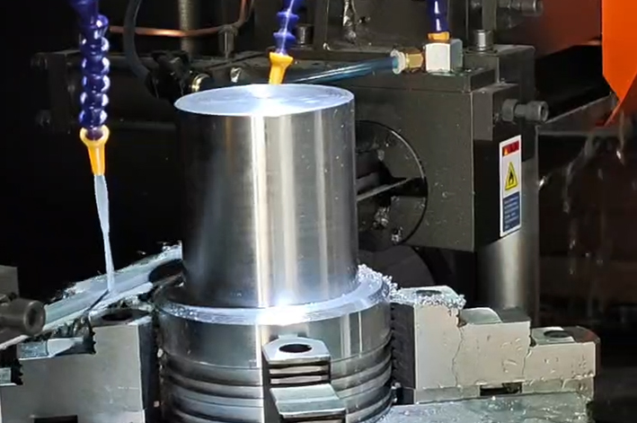 济南北方金锋锯业有限公司研发生产的平竖两切带锯床,破解了油缸底座、油缸缸底的锯切难题,是批量下料的理想设备。锯床最突出的优势是锯条可90°自动换向,兼顾垂直锯切与水平锯切。平切功能可以高效地完成底座平面的下料或长度方向的切断;竖切功能则可以精准地处理端面、切坡口等部位的锯切。这种灵活性是普通锯床无法比拟的。