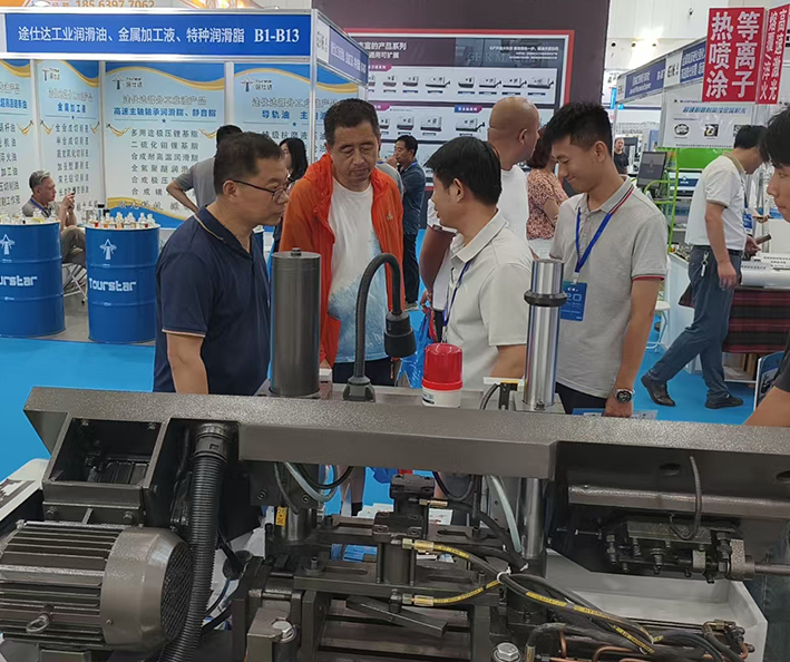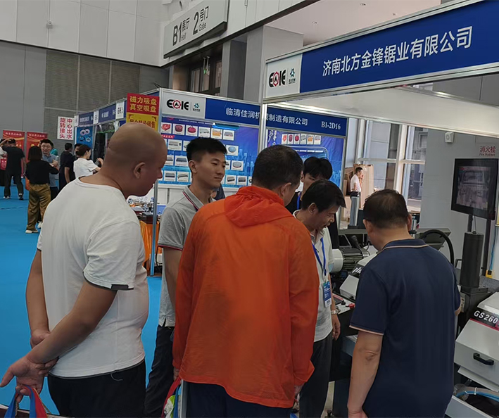 金锋带锯床凭借行业领先的尖端技术、卓越的切削性能和智能化控制系统,成为展会焦点。展台前来往客户络绎不绝、洽谈不断,市场部通过动态演示、技术讲解等方式,让客户直观感受到金锋锯业锯床的技术优势,吸引众多国内外客户前来驻足交流。